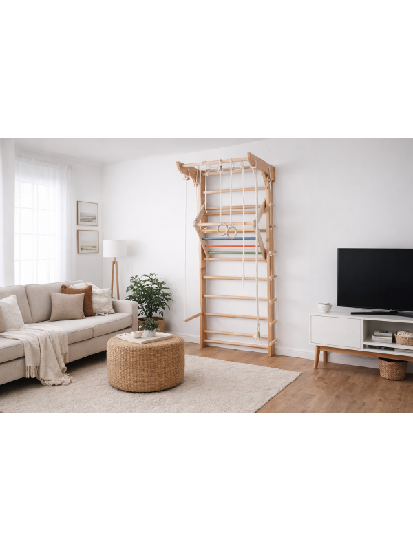 Sve-u-jednom drvene švedske ljestve – idealne za unutarnju kondiciju i igru za sve uzraste. Dizajnirane su za cijelu obitelj i nude sigurnu, učinkovitu i zabavnu aktivnost kod kuće.