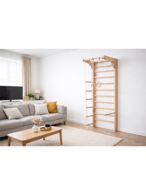 Naše drvene švedske ljestve s pomičnom šipkom i dodacima savršen su izbor za cijelu obitelj! Izrađene u Europi od visokokvalitetnog bukovog drva i certificirane prema standardu SIST EN 1176-1:2018, osiguravaju sigurnost, dugotrajnost i prilagodljivost za sve generacije.