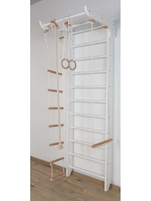 Bijele zidne ljestve s dodacima – Višenamjenski kućni fitness centar za djecu i odrasle!