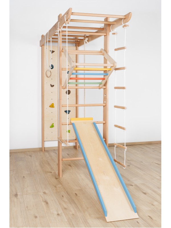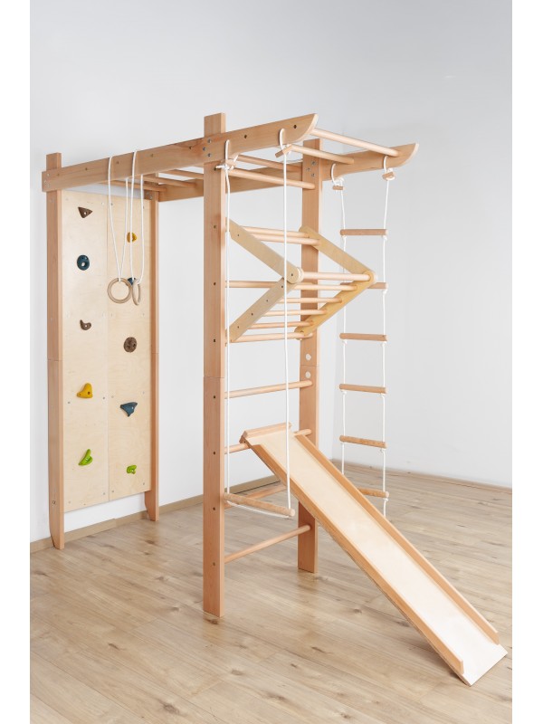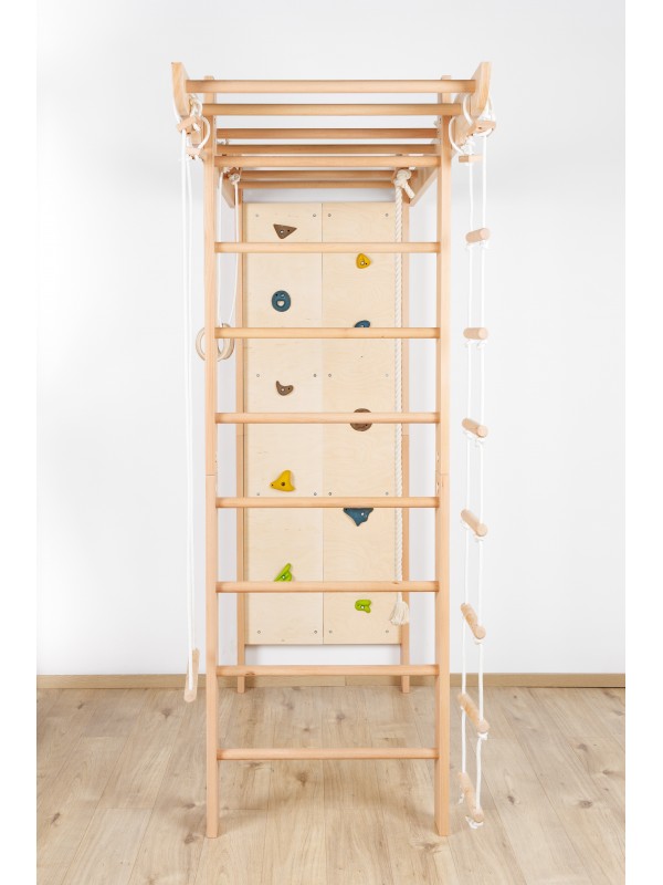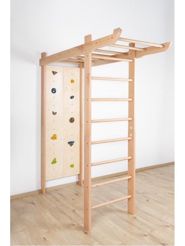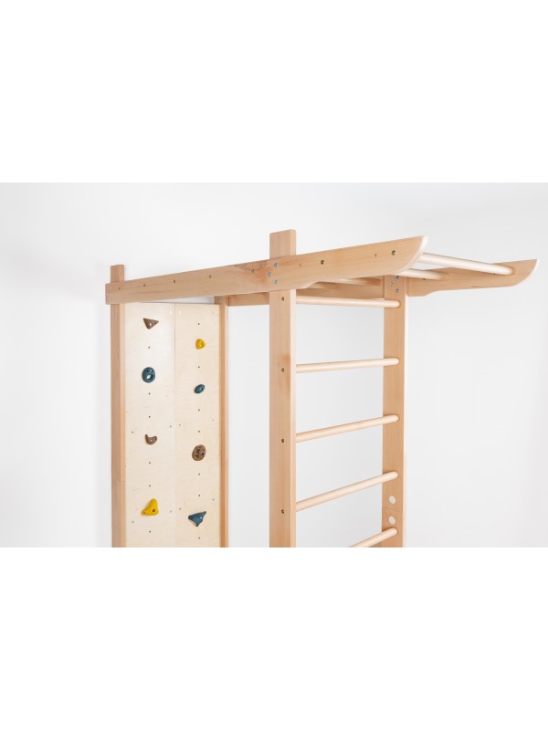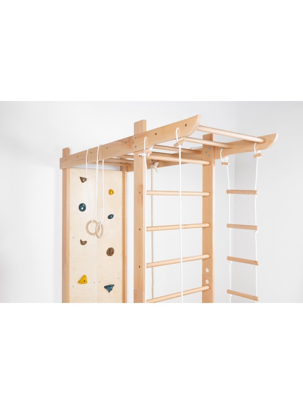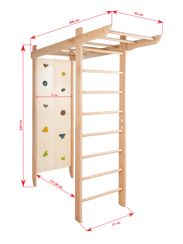 Višenamjenska unutarnja oprema za igru, kretanje i vježbanje za sve generacije. Masivno drvo bukve osigurava stabilnost, sigurnost i prirodan izgled, dok promišljen dizajn potiče kretanje i zajedničko druženje.