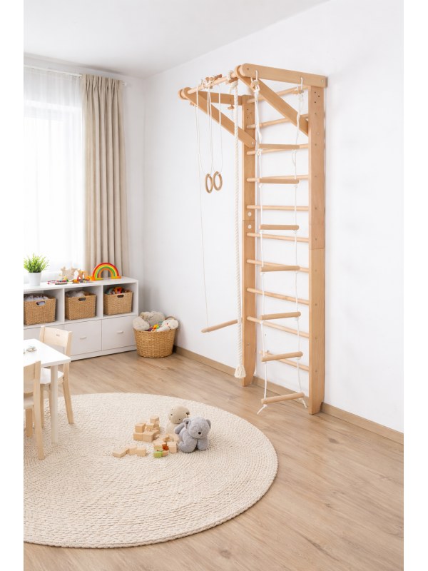 Izrađene od visokokvalitetnog bukovog drva, ove ljestve kombiniraju funkcionalnost i sigurnost s prirodnim izgledom. Zahvaljujući stabilnoj konstrukciji i velikoj nosivosti, pogodne su i za djecu i za odrasle. Vježbanjem na švedskim ljestvama aktiviraju se različite mišićne skupine, razvija se fleksibilnost i snaga, a uz igru se potiče koordinacija i motorički razvoj djece.