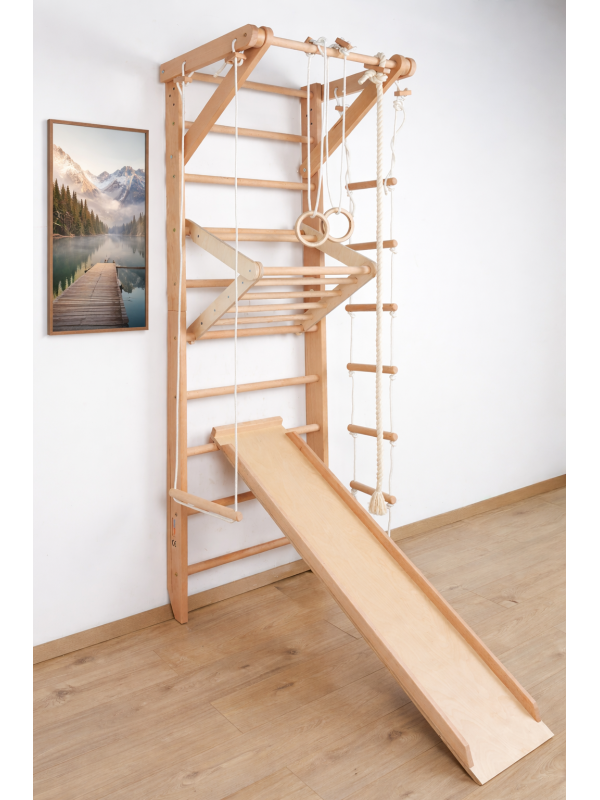 Kompaktna i svestrana, izrađena od prirodnog bukovog drva, omogućuje djeci i odraslima da vježbaju, istežu se i zabavljaju u sigurnom okruženju.