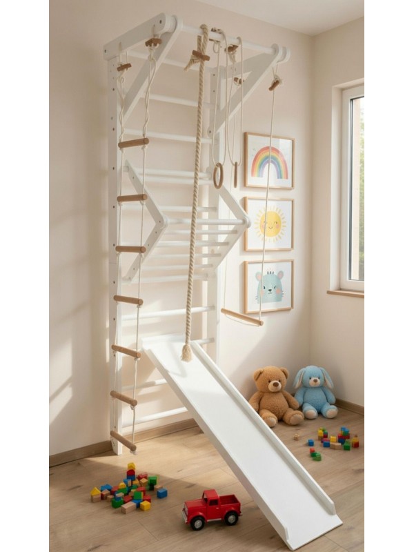 Bijeli dječji ribstol s dodacima – Certificirana drvena ljestvica za vježbanje djece i odraslih kod kuće